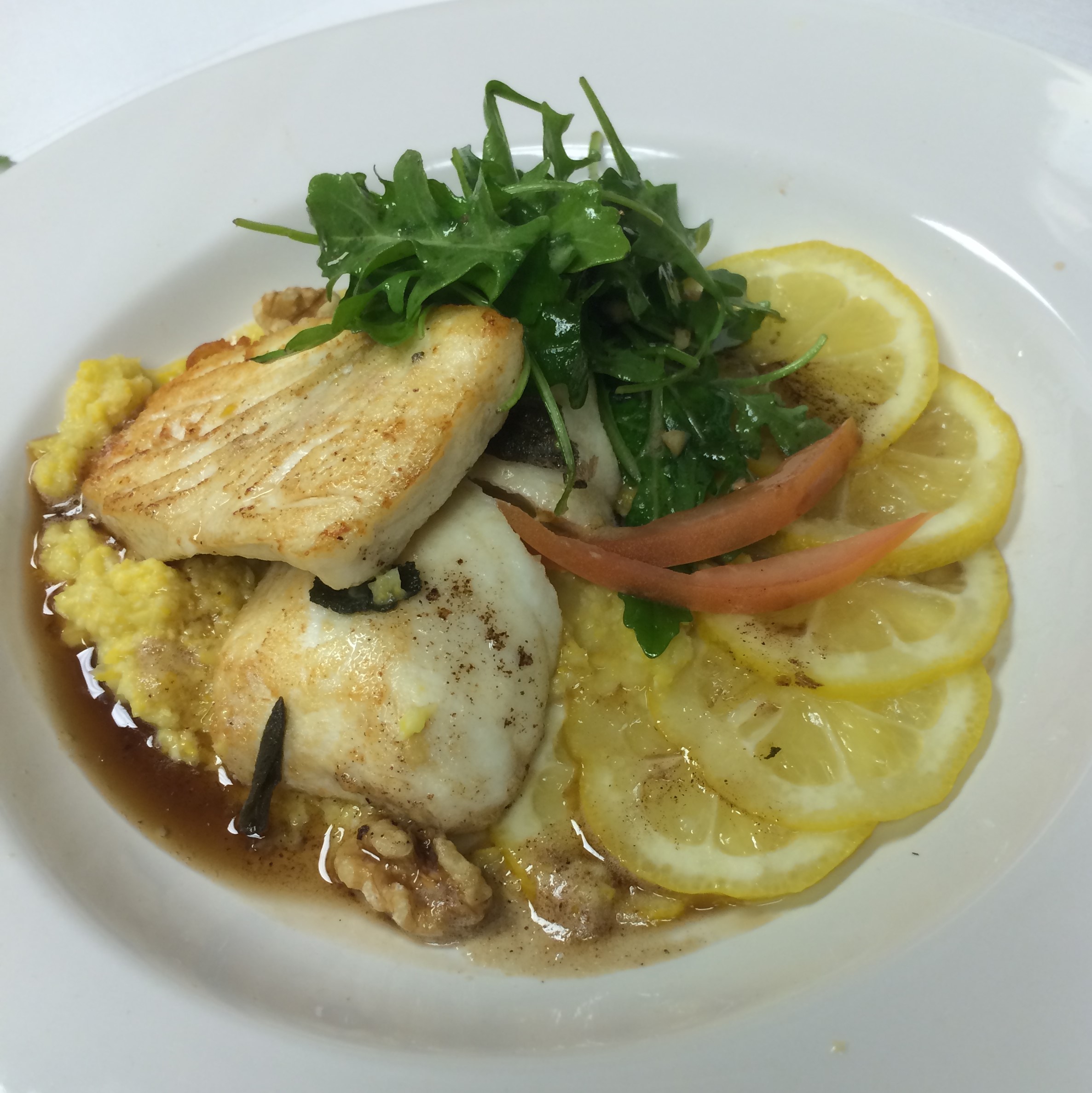 One of our most popular dishes is the halibut saltimbocca with sweet corn polenta. Learn to make this tender, delicious